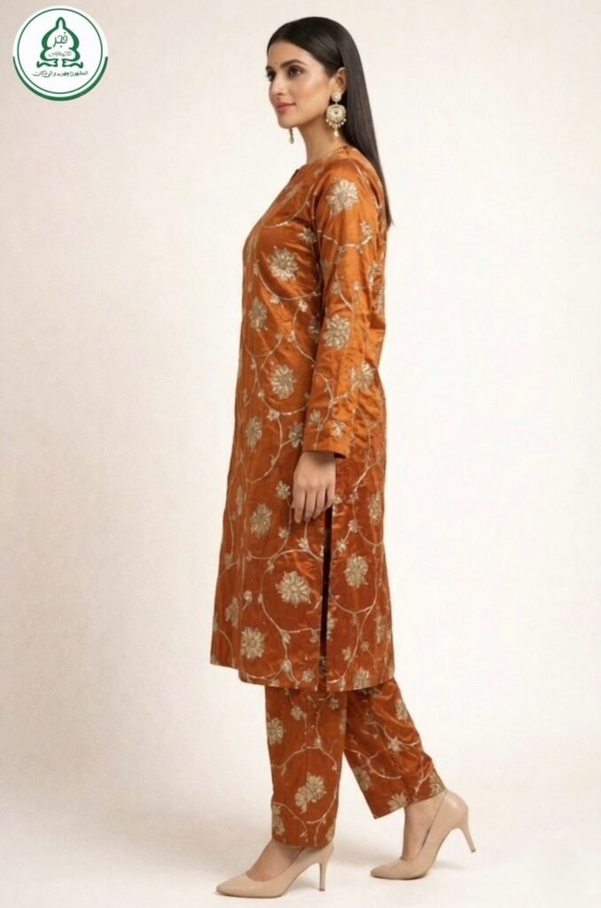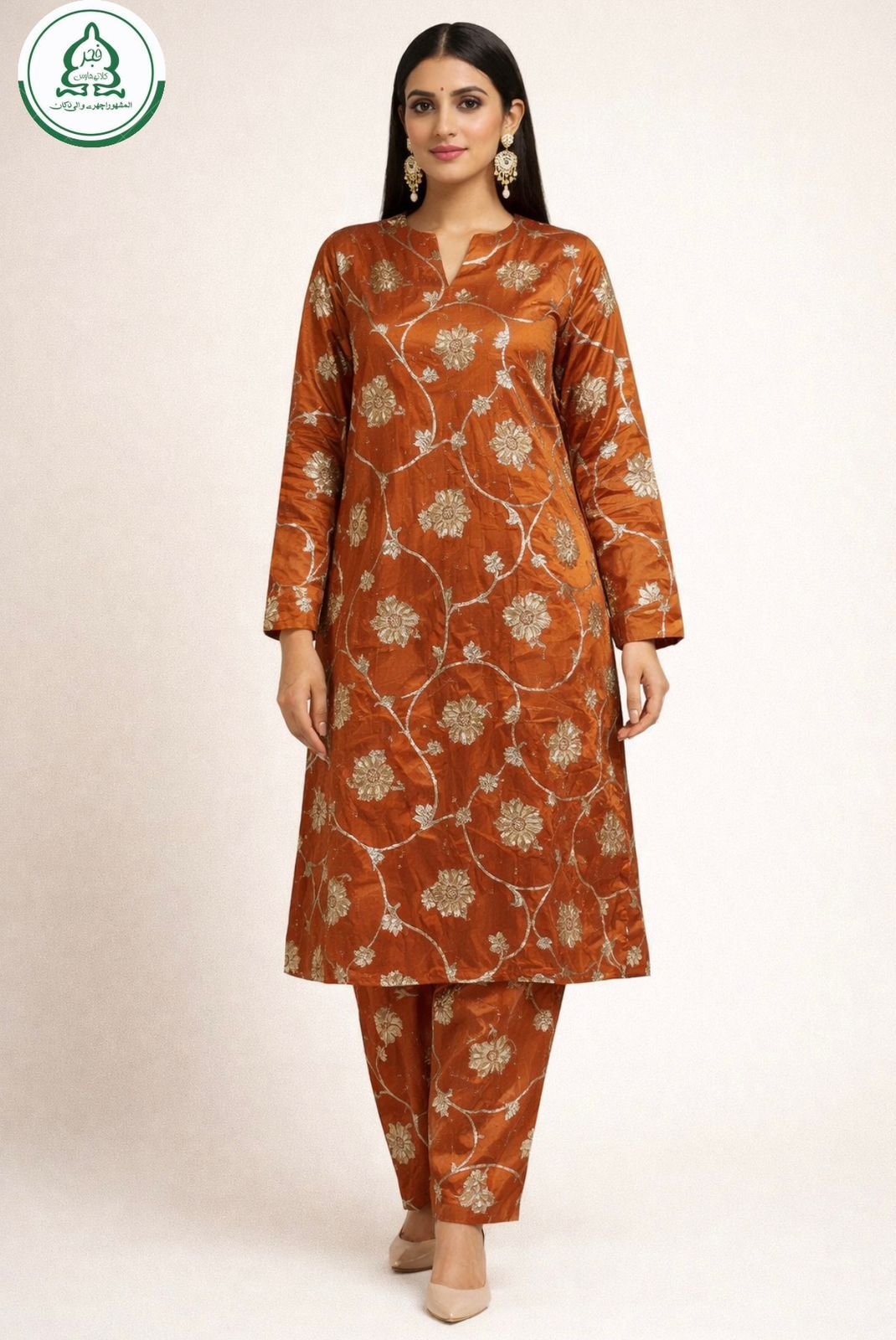 ₨5,000Add to cartDescription: Product Overview: A sophisticated and regal unstitched ensemble featuring premium Pure Satin Jamawar. This outfit showcases a mesmerizing floral jaal, making it an ideal choice for evening wear, weddings, and formal celebrations. Key Features: * Fabric: 100% Pure Satin Jamawar (Premium, soft, and durable). * Work: Intricate all-over floral pattern crafted with Gold Zari …
