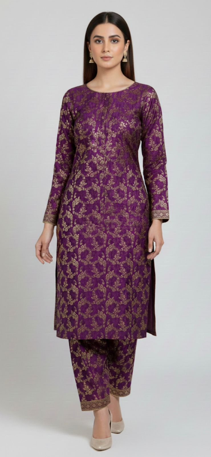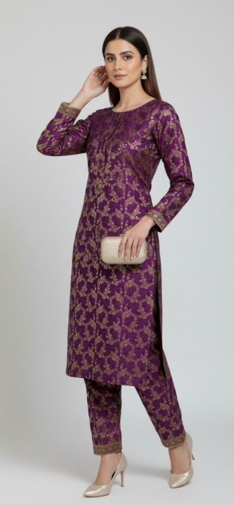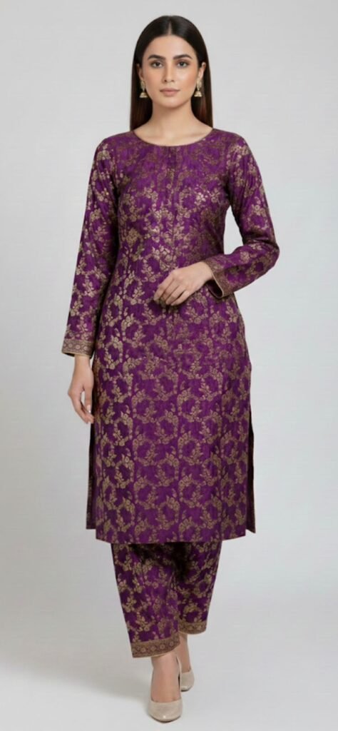 Be the first to review “Premium Royal Purple Pure Satin Jamawar Unstitched 2-Piece Set”
