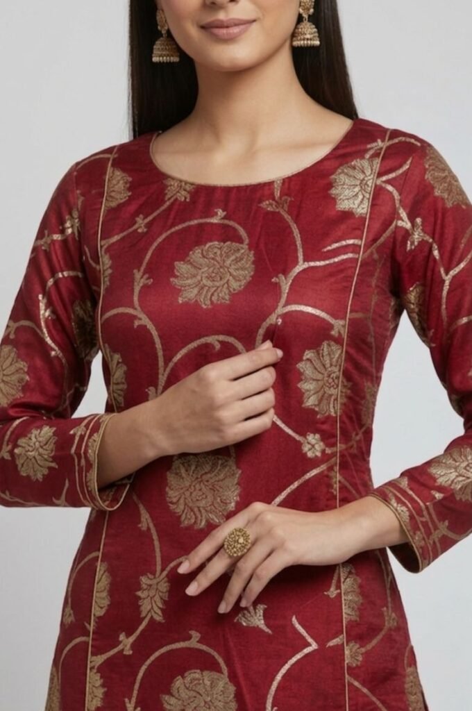 * Fabric: Premium Pure Poth Jamawar, known for its soft drape and rich, lustrous texture.