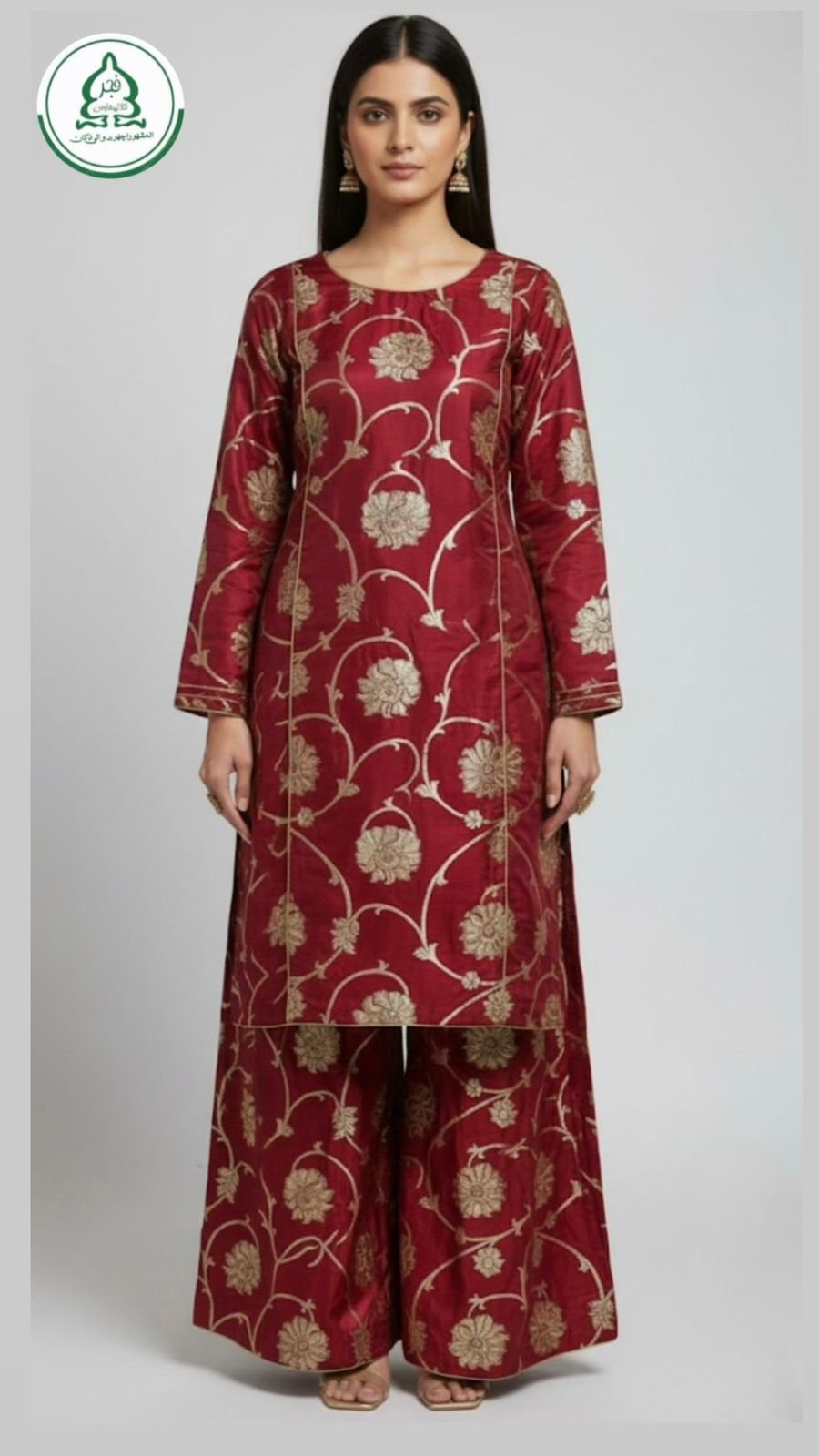 Elevate your ethnic wardrobe with the timeless charm of our Pure Poth Jamawar collection. This unstitched 2-piece ensemble from Fajar ClothHouse is a masterpiece of traditional craftsmanship, designed for the woman who appreciates luxury and intricate detail.