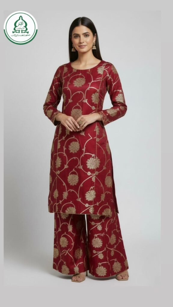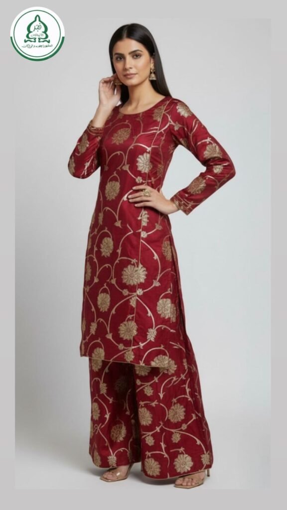 ₨5,000Add to cartDescription: Product Overview: A sophisticated and regal unstitched ensemble featuring premium Pure Satin Jamawar. This outfit showcases a mesmerizing floral jaal, making it an ideal choice for evening wear, weddings, and formal celebrations. Key Features: * Fabric: 100% Pure Satin Jamawar (Premium, soft, and durable). * Work: Intricate all-over floral pattern crafted with Gold Zari …