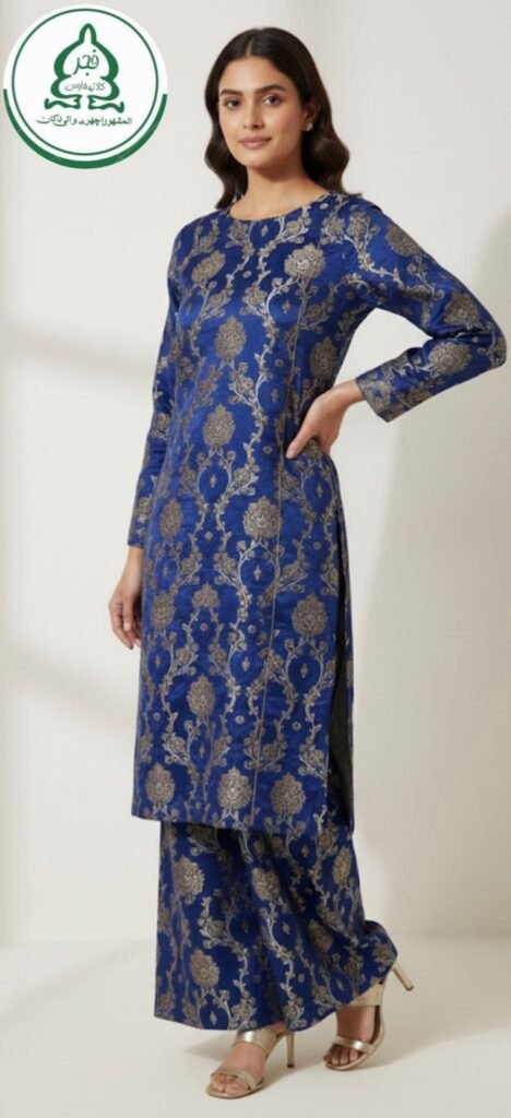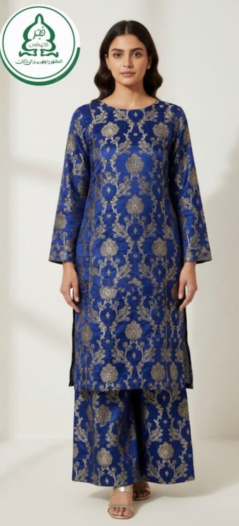 ₨4,500Add to cartEmbrace timeless grace with this Deep Navy suit, featuring a heritage-inspired floral weave. This unstitched fabric set from Fajar Cloth House is a tribute to traditional Banarasi artistry, designed for the woman who loves understated luxury. * Fabric: Premium-grade Banarasi Jamawar with a dense, textured weave. * Aesthetic: Detailed gold-copper floral motifs set against a …